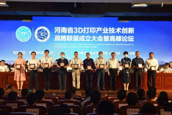 随后,与会领导共同按动按钮,为河南省3D打印产业技术创新战略联盟接牌,共同宣布河南省3D打印产业技术创新战略联盟正式成立
