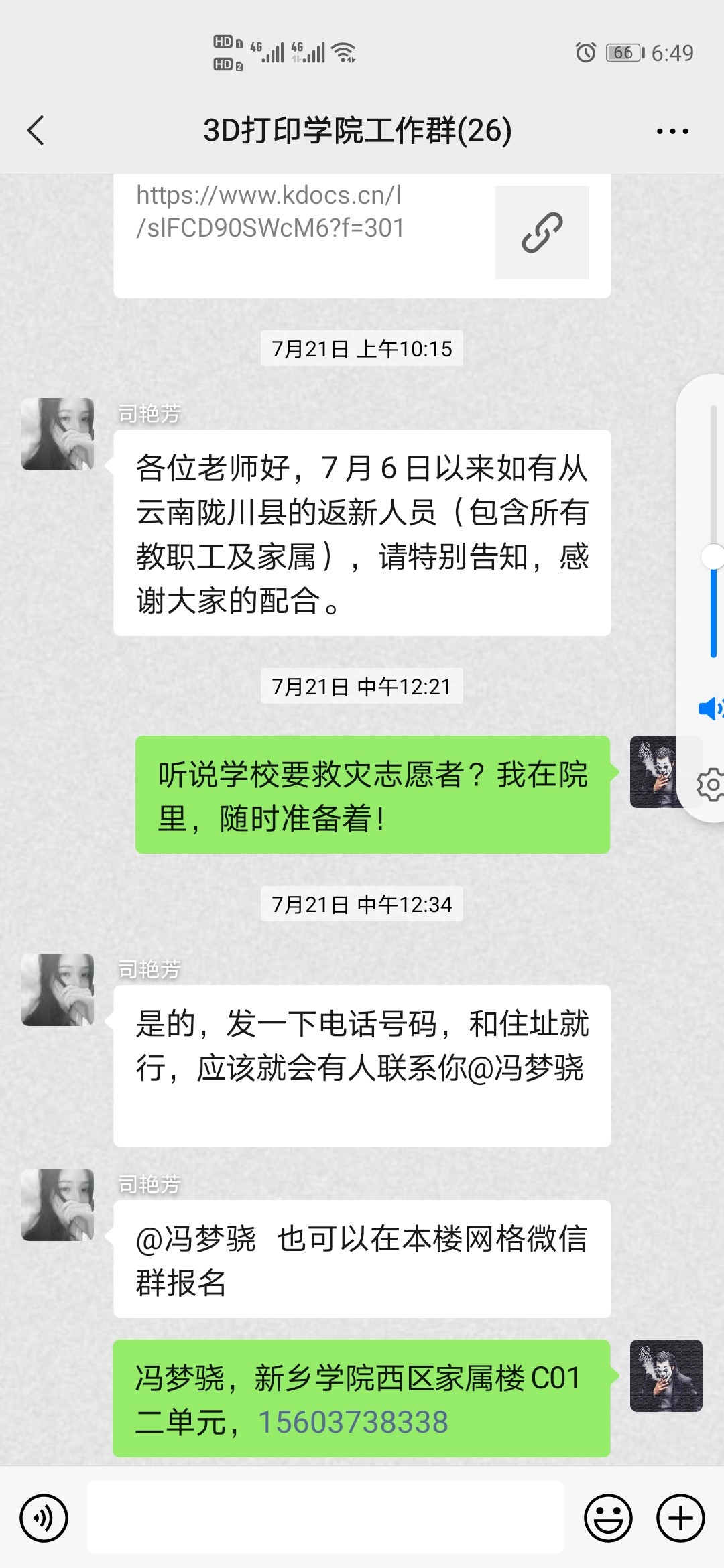 7月21日夜,新乡市全区再次遭遇雷暴和强降雨,新乡市防汛响应等级由二级转为一级,成为洪灾重灾区。7月23日早上,冯梦骁同志在协助E8官网登录入口校史馆完成公司重要历史文献转移后,接到E8官网登录入口被定为新乡市抗洪救灾外地救援力量服务中心的通知,冯梦骁同志发挥党员先锋带头作用,第一时间到E8官网登录入口应急指挥中心报到,作为第一批E8官网登录入口志愿者,加入新乡市抗洪救灾外地救援力量服务中心引导组,为来自全国各地的抗洪抢险救援队伍和人员展开引导和志愿服务工作。