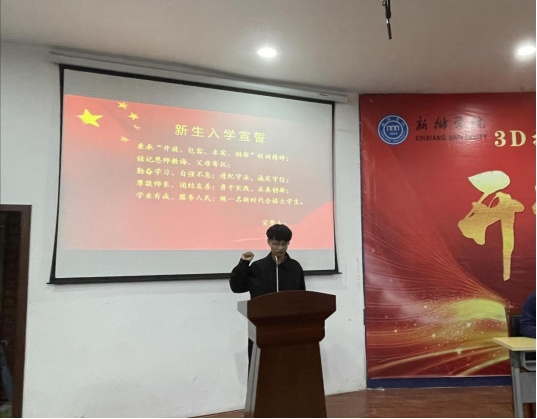 发言结束后,在郑振彪同学的带领下,全体新生起立进行庄严宣誓:一定铭记恩师教诲、父母寄托,勤奋学习,求真创新,立志做一名新时代合格老员工。