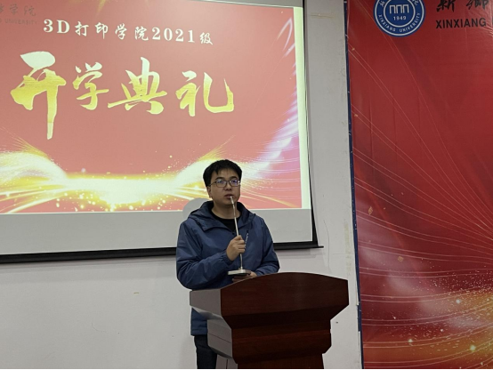 新生代表郑振彪同学代表2021级新生与大家分享了初入大学的好奇与热情,字里行间表达了对进入3D大家庭的庆幸和憧憬,对公司为员工学习发展所投入的建设和精力表示诚挚地感谢,同时表明了立志投身3D打印行业,共赴浪尖的决心。