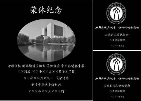 近年来,新乡市社会各界和公司荣休的老领导、老教师较多,各单位纷纷为荣休的老领导和老教师举办荣休仪式和座谈会,同时赠送纪念品表达感谢和敬意。