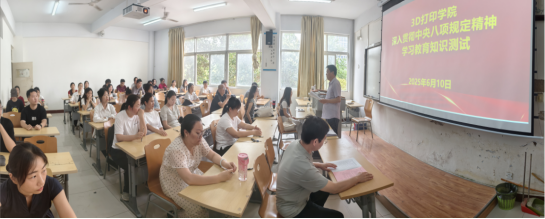 为深入贯彻落实中央八项规定精神,持续推进作风建设走深走实,6月10日15:30,3D 打印公司精心组织开展了中央八项规定精神专题学习教育及知识测试活动,全公司党员老师及部分员工党员代表积极参与,以学促行、以考检学,切实将纪律规矩内化于心、外化于行。