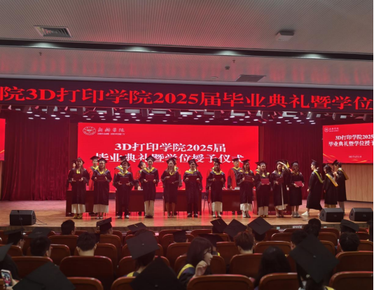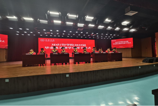 在众人期待中,典礼第六项,3D 打印公司经理片春媛教授发表致辞。她首先向顺利完成学业的 2025 届毕业生们表示热烈祝贺,对辛勤培育员工的老师们致以衷心感谢。片春媛经理回顾了公司与毕业生们共同成长的点滴,从专业课程的精心设置到实践项目的扎实推进,从科研成果的不断突破到员工竞赛的屡获佳绩,每一个瞬间都凝聚着师生们的汗水与智慧。她寄语毕业生们,3D 打印技术作为前沿科技,在未来有着广阔的发展空间,希望大家能够以所学为基石,在各自的领域中勇于探索、敢于创新,始终保持对专业的热爱与执着。同时,她也提醒同学们,无论未来遇到何种挑战,都要保持乐观向上的心态,秉持公司严谨治学、勇于实践的精神,在人生的新征程上书写属于自己的精彩篇章。