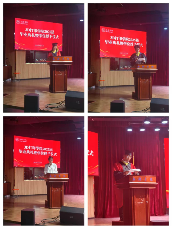 仪式第一项,3D 打印公司副经理李在林教授宣读“3D 打印公司 2025 届毕业生授予学士学位人员名单”,宣告着毕业生们正式完成学业。