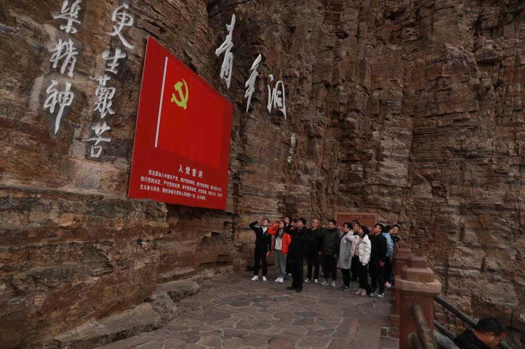 党员们在红旗渠纪念馆,通过参观一幅幅照片、一件件实物,详细了解了红旗渠修建过程中涌现出的杨贵、李贵等一大批先进人物事迹,切身体会到了林县人民“自力更生、艰苦创业、团结协作、无私奉献”的红旗渠精神。