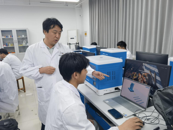 田书记在为2021增材制造工程实验班主讲的《产品创意设计》课程中,要求全体员工设计习近平总书记为主题教育提出的“学思想、强党性、重实践、建新功”十二个立体文字,组织员工用三维立体建模软件设计各种字体、各种形式的三维立体文字,随后利用实验室全部打印成型。通过此项活动,员工不仅增长了设计与打印的专业技能,更是深刻记住了总书记所批示的这十二个字的全部内容。
