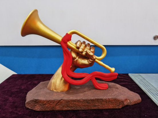 同时,田书记还在今年所指导的毕业设计中,再次发动同学们创作了例如“一大旧址模型”、“井冈山纪念雕塑(井冈红旗与胜利的号角)”、红色延安创意作品、天安门城楼模型、毛主席纪念堂模型、革命导师(毛主席、周总理、邓小平)伟人纪念像、革命英烈董存瑞纪念像等一系列红色文创作品。同学们通过前期的红色史料收集,心灵上受到了深层次的触动和洗礼。在打印作品和撰写论文的时候,很好的自觉接受了思想政治教育。此举不仅能促进员工专业技能和思想道德品质的大幅度提升,还能产生经济效益。这些红色文创作品经过后续的包装和运作,可以成为绿色环保的红色文创产品。在产生经济效益的同时,又可以进一步扩大红色思想政治教育引领的效果,同时促进公司就业创业工作高质量发展。