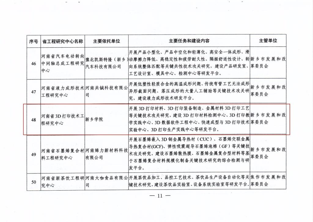 新乡市金属3D打印成型及工艺优化技术重点实验室