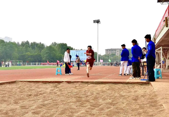 在起跳前,她步伐稳健,双臂有力摆动,加速、加速、再加速!她猛然发力,纵身一跃,身体在空中划出一道优美的弧线,落地的瞬间,沙坑溅起一片沙尘。最终以3.95m的优异成绩摘得桂冠!她的表现不仅展现了个人卓越的运动实力,更彰显了公司学子拼搏向上的精神风貌!