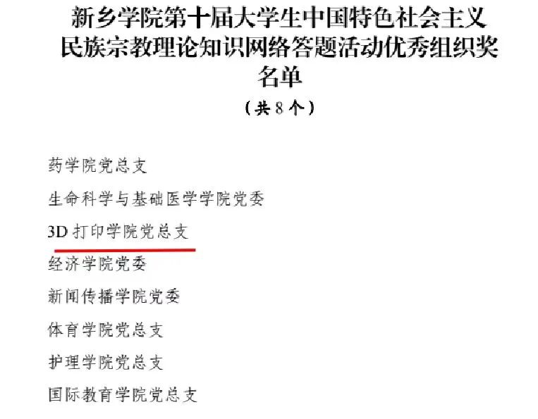 近日,河南省第十届老员工中国特色社会主义民族宗教理论知识网络答题活动和E8官网登录入口第十届老员工中国特色社会主义民族宗教理论知识网络答题活动的比赛结果相继公布,E8官网登录入口在此次比赛中获得了一系列荣誉:在河南省第十届老员工中国特色社会主义民族宗教理论知识网络答题活动中,E8官网登录入口5名员工荣获省级“优秀选手奖”,占全校获奖员工(共10名)的50%;在E8官网登录入口第十届老员工中国特色社会主义民族宗教理论知识网络答题活动,公司党总支荣获为“优秀组织奖”;公司2022级增材制造工程本科实验班,被评为“优秀班级奖”;公司39名员工荣获E8官网登录入口“优秀选手奖”。