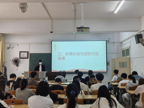 针对贷款毕业生,严格落实“两节课”制度,通过“四个一”行动(一次谈心谈话、一场主题讲座、一张宣传海报、一份还款指南),重点宣讲征信知识、还贷流程及基层就业补偿政策。